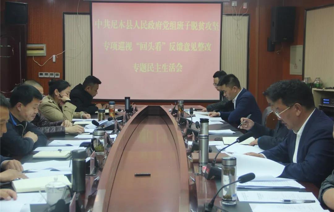 5月18日,中共尼木县人民政府党组班子召开脱贫攻坚专项巡视“回头看”反馈意见整改专题民主生活会。自治区应急管理厅党组成员、副厅长、自治区党委第三巡视组副组长拉增应邀参加会议;尼木县委副书记、县长普琼主持会议;县委副书记孙先龙,县委常委、组织部部长杜开凡,县委常委、纪委书记、监委主任郝蕾到会指导;尼木县有关部门、各乡镇人民政府主要负责同志和“两代表一委员”代表、群众代表列席会议。
