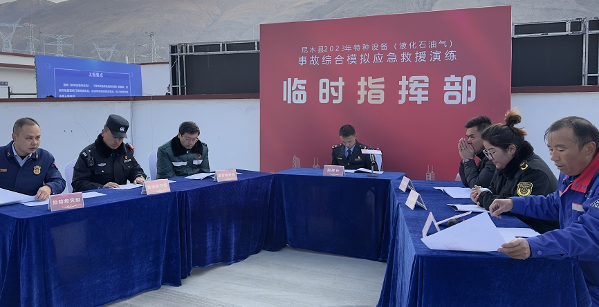 为提高尼木县市场监管部门及特种设备企业突发事件应急处置能力,11月29日,尼木县市场监督管理局、公安局、消防大队、人民医院、住建局等县安委会成员单位在县宏利液化气站组织开展了2023年特种设备(液化石油气)事故综合模拟应急救援演练。副县长罗桑强巴担任演练总指挥长,市场监督管理局局长李元杰担任临时指挥长,各乡镇分管安全生产负责人、学生代表、特种设备使用单位代表、餐饮单位代表、群众代表等50余人到场观摩演练。